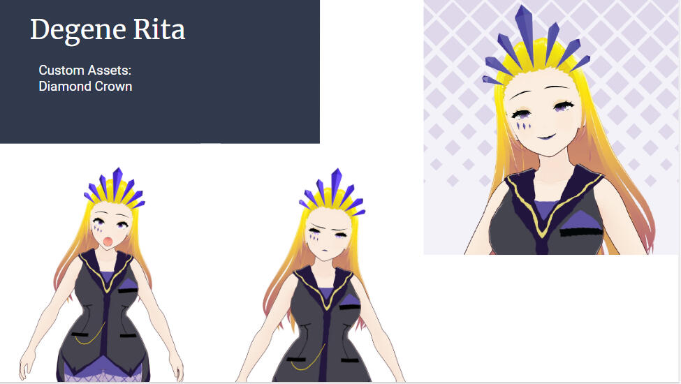 Base V-roid model with custom assets. this can include custom clothes and other "Dynamic" accessories such as moving tails or ears. all includes minor adjustments to V-roid proportions normally not possible in V-roid studio itself.come with 3-5 assets based on complexity.